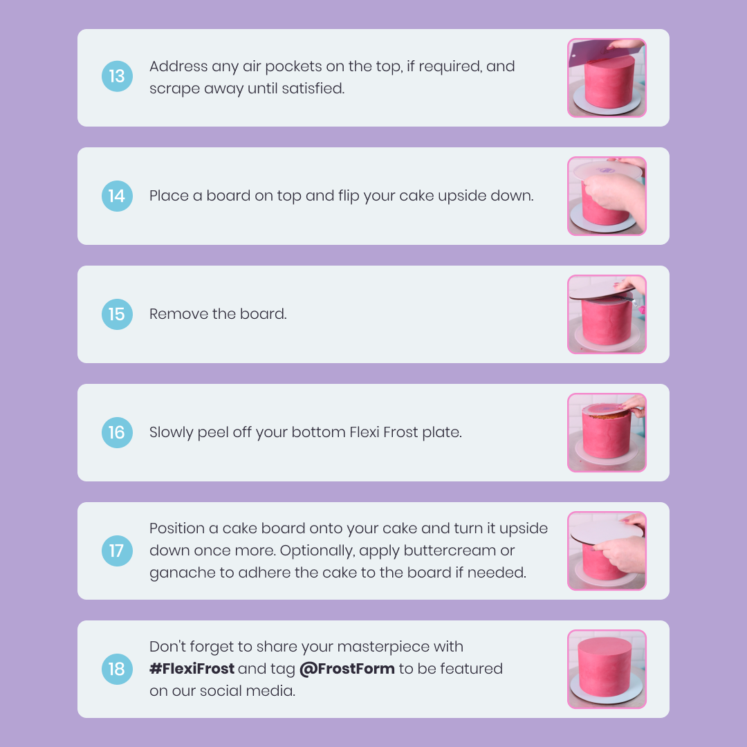 No more struggles with removal – simply peel off Flexi Frost once your masterpiece is set. Each packet includes two plates and a detailed picture tutorial, empowering you to create professional-quality cakes with ease.