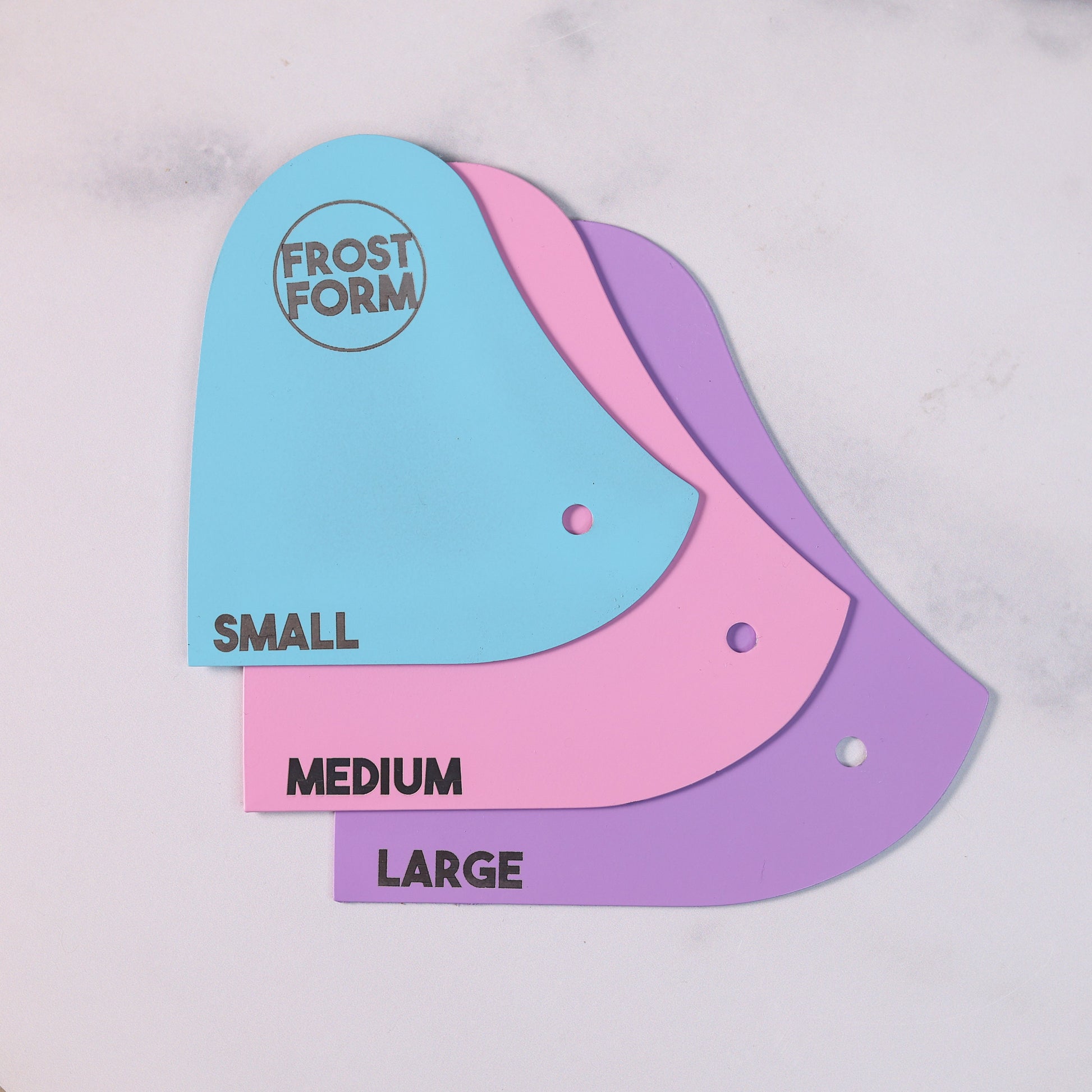 Our Frost Finisher Scrapers come in a set of three specialized detailing scrapers, designed for your FROST FORM™ cakes and more.