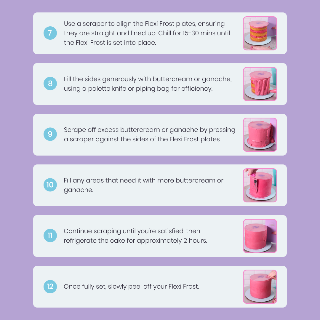 No more struggles with removal – simply peel off Flexi Frost once your masterpiece is set. Each packet includes two plates and a detailed picture tutorial, empowering you to create professional-quality cakes with ease.