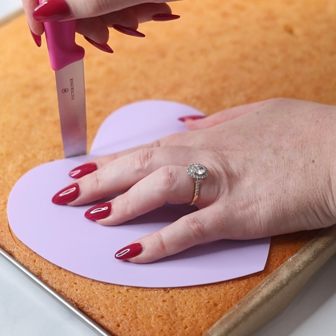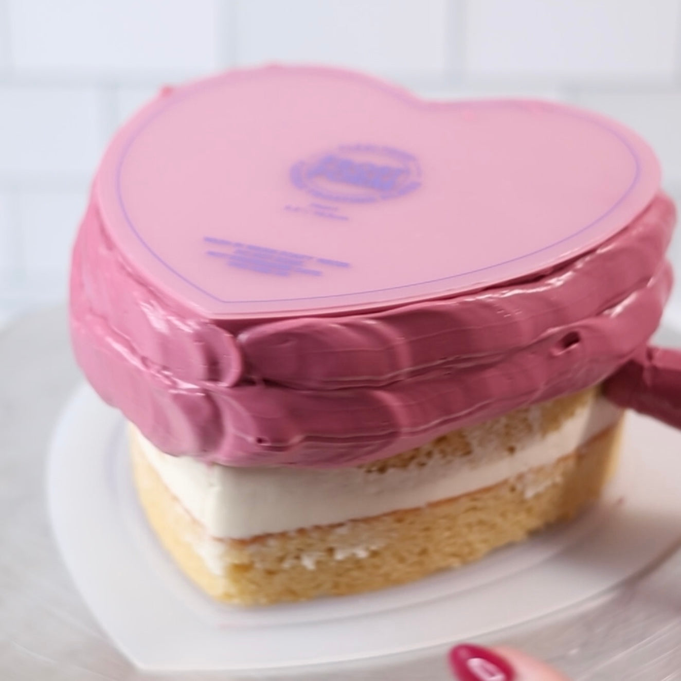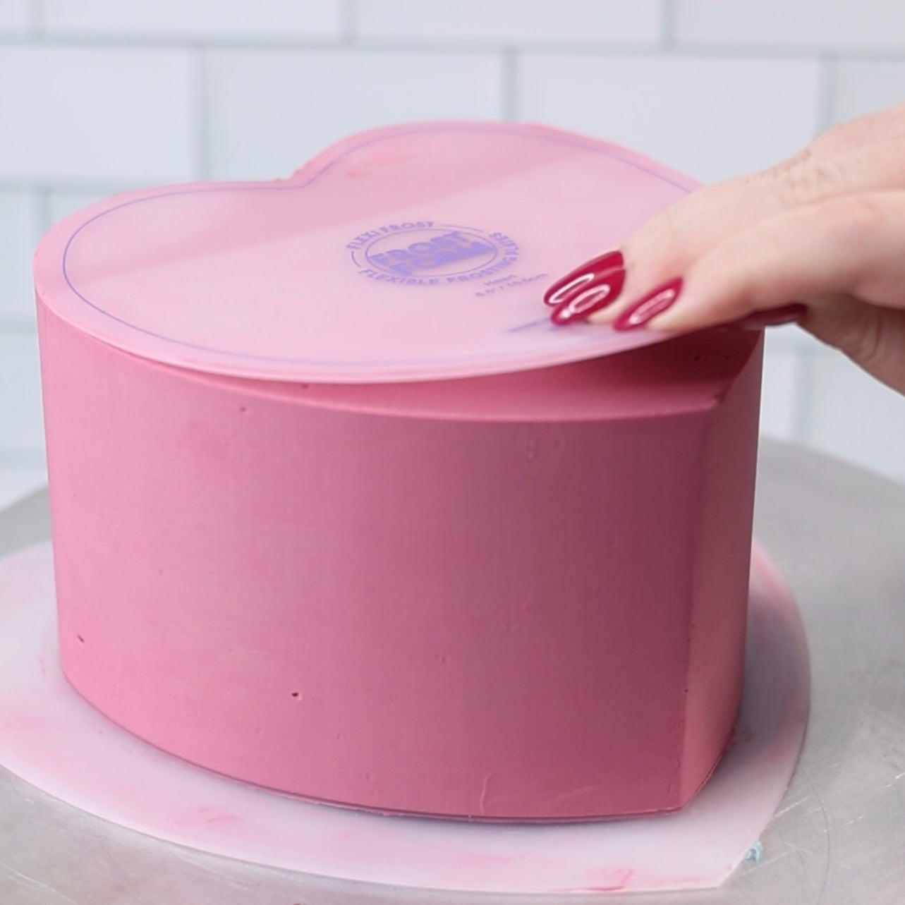 1. Consider Your Cake Size: The carving templates are made to fit regular cake tins. For the Heart Flexi Frost & Carve, you can use a 6" heart cake tin for the 6.5" Flexi Frost & Carve and an 8" heart tin for the 8.5" Flexi Frost & Carve. Alternatively, you could also use a bigger cake in a heart/round or even a sheet cake.